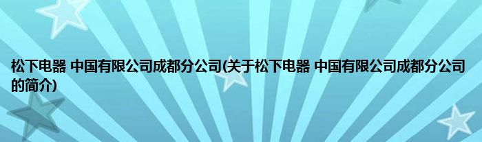 本文关于松下电器 中国有限公司成都分公司的简介就讲解完毕,希望对大家有所帮助。