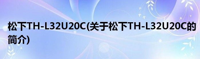 本文关于松下TH-L32U20C的简介就讲解完毕,希望对大家有所帮助。