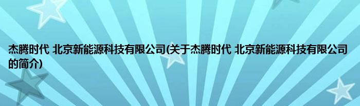 本文关于杰腾时代 北京新能源科技有限公司的简介就讲解完毕,希望对大家有所帮助。