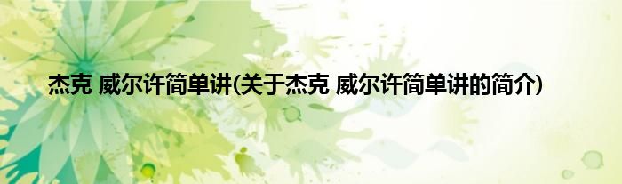 本文关于杰克。威尔许简单讲的简介就讲解完毕,希望对大家有所帮助。