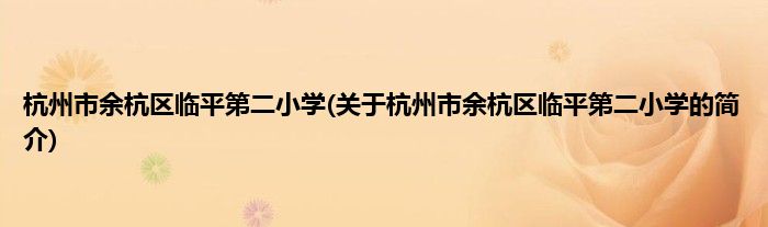 本文关于杭州市余杭区临平第二小学的简介就讲解完毕,希望对大家有所帮助。