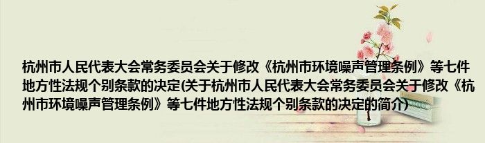 本文关于杭州市人民代表大会常务委员会关于修改《杭州市环境噪声管理条例》等七件地方性法规个别条款的决定的简介就讲解完毕,希望对大家有所帮助。