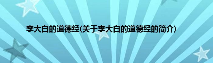本文关于李大白的道德经的简介就讲解完毕,希望对大家有所帮助。