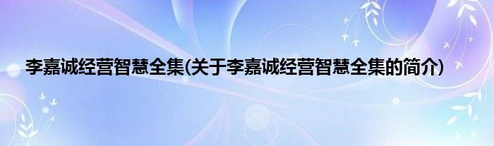 本文关于李嘉诚经营智慧全集的简介就讲解完毕,希望对大家有所帮助。