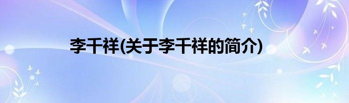 大家好,李千祥,关于李千祥的简介很多人还不知道,现在让我们一起来看看吧!