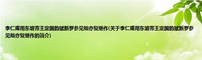本文关于李仁甫用东坡寄王定国韵赋新罗参见贻亦复继作的简介就讲解完毕,希望对大家有所帮助。
