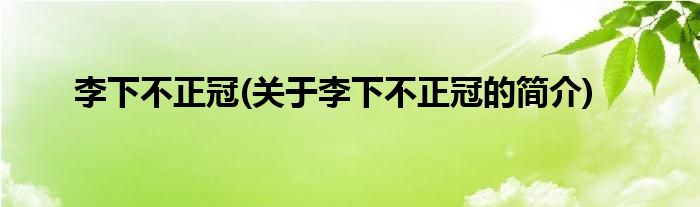 大家好,李下不正冠,关于李下不正冠的简介很多人还不知道,现在让我们一起来看看吧!