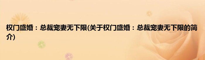 大家好,权门盛婚:总裁宠妻无下限,关于权门盛婚:总裁宠妻无下限的简介很多人还不知道,现在让我们一起来看看吧!