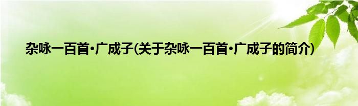1、 《杂咏一百首·广成子》的作者是刘克庄。