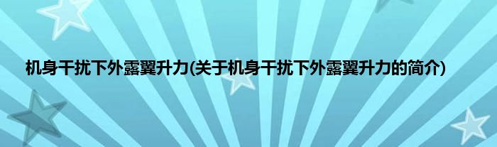 大家好,机身干扰下外露翼升力,关于机身干扰下外露翼升力的简介很多人还不知道,现在让我们一起来看看吧!