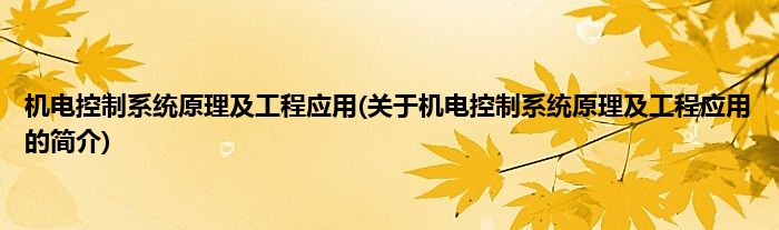 本文关于机电控制系统原理及工程应用的简介就讲解完毕,希望对大家有所帮助。