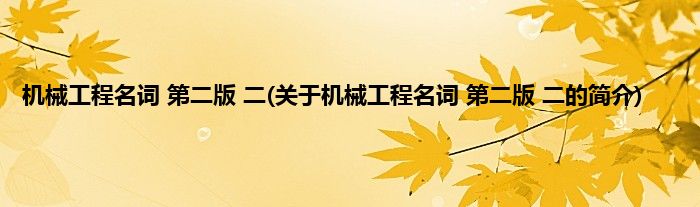 本文关于机械工程名词 第二版 二的简介就讲解完毕,希望对大家有所帮助。