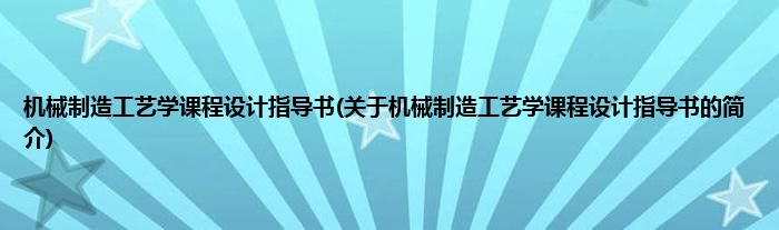 大家好,机械制造工艺学课程设计指导书,关于机械制造工艺学课程设计指导书的简介很多人还不知道,现在让我们一起来看看吧!