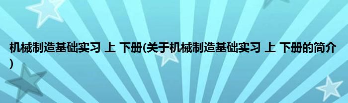 大家好,机械制造基础实习 上。下册,关于机械制造基础实习 上。下册的简介很多人还不知道,现在让我们一起来看看吧!