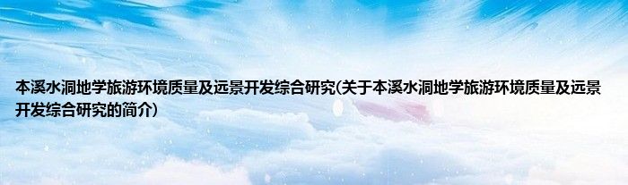 大家好,本溪水洞地学旅游环境质量及远景开发综合研究,关于本溪水洞地学旅游环境质量及远景开发综合研究的简介很多人还不知道,现在让我们一起来看看吧!