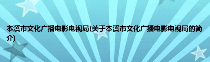 大家好,本溪市文化广播电影电视局,关于本溪市文化广播电影电视局的简介很多人还不知道,现在让我们一起来看看吧!
