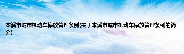 大家好,本溪市城市机动车停放管理条例,关于本溪市城市机动车停放管理条例的简介很多人还不知道,现在让我们一起来看看吧!