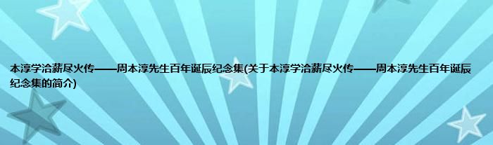 本文关于本淳学洽薪尽火传——周本淳先生百年诞辰纪念集的简介就讲解完毕,希望对大家有所帮助。