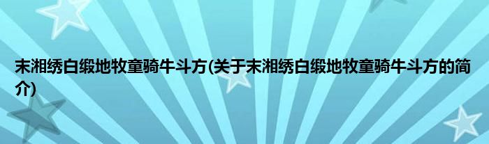 本文关于末湘绣白缎地牧童骑牛斗方的简介就讲解完毕,希望对大家有所帮助。