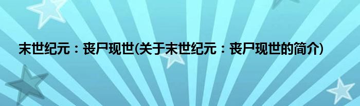 本文关于末世纪元:丧尸现世的简介就讲解完毕,希望对大家有所帮助。