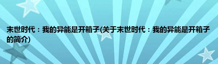 本文关于末世时代:我的异能是开箱子的简介就讲解完毕,希望对大家有所帮助。