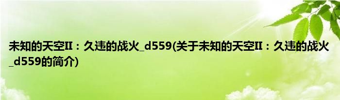 本文关于未知的天空II:久违的战火_d559的简介就讲解完毕,希望对大家有所帮助。