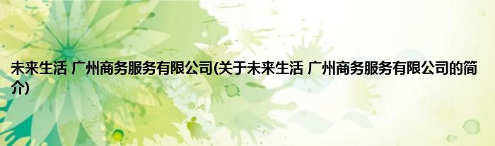 本文关于未来生活 广州商务服务有限公司的简介就讲解完毕,希望对大家有所帮助。