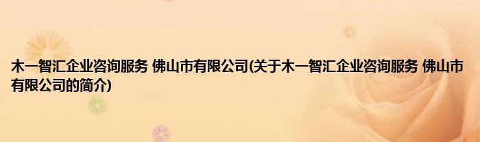 本文关于木一智汇企业咨询服务 佛山市有限公司的简介就讲解完毕,希望对大家有所帮助。