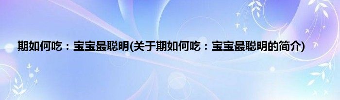 本文关于期如何吃:宝宝最聪明的简介就讲解完毕,希望对大家有所帮助。