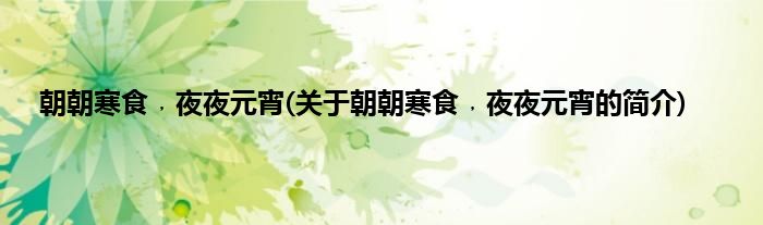 大家好,朝朝寒食﹐夜夜元宵,关于朝朝寒食﹐夜夜元宵的简介很多人还不知道,现在让我们一起来看看吧!