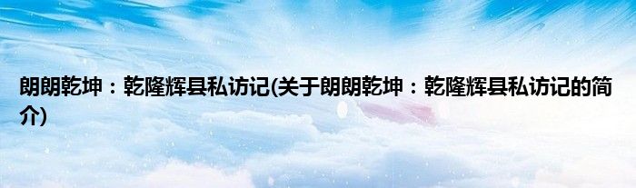 本文关于朗朗乾坤:乾隆辉县私访记的简介就讲解完毕,希望对大家有所帮助。
