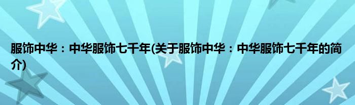 本文关于服饰中华:中华服饰七千年的简介就讲解完毕,希望对大家有所帮助。