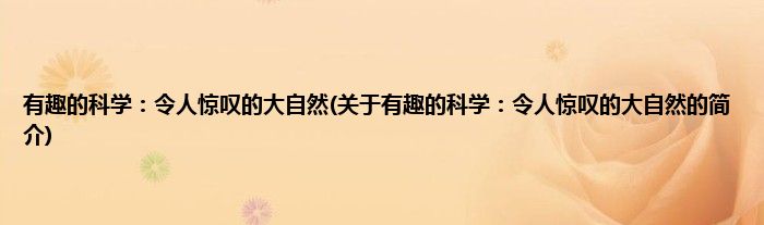 本文关于有趣的科学:令人惊叹的大自然的简介就讲解完毕,希望对大家有所帮助。
