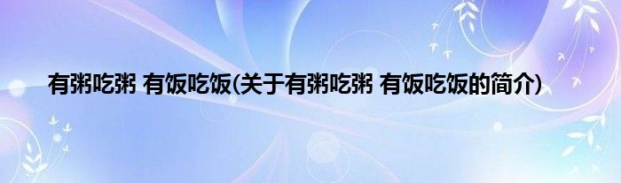 大家好,有粥吃粥,有饭吃饭,关于有粥吃粥,有饭吃饭的简介很多人还不知道,现在让我们一起来看看吧!