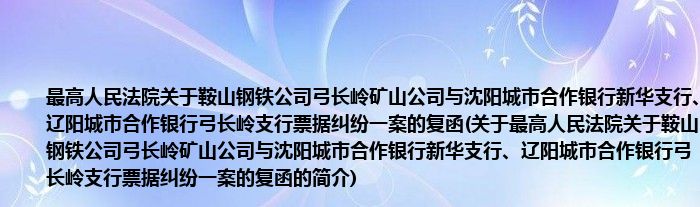本文关于最高人民法院关于鞍山钢铁公司弓长岭矿山公司与沈阳城市合作银行新华支行、辽阳城市合作银行弓长岭支行票据纠纷一案的复函的简介就讲解完毕,希望对大家有所帮助。