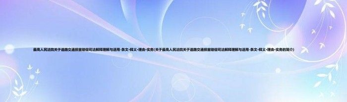 本文关于最高人民法院关于道路交通损害赔偿司法解释理解与适用-条文·释义·理由·实务的简介就讲解完毕,希望对大家有所帮助。