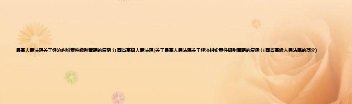 大家好,最高人民法院关于经济纠纷案件级别管辖的复函 江西省高级人民法院,关于最高人民法院关于经济纠纷案件级别管辖的复函 江西省高级人民法院的简介很多人还不知道,现在让我们一起来看看吧!