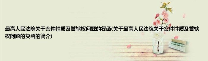 本文关于最高人民法院关于案件性质及管辖权问题的复函的简介就讲解完毕,希望对大家有所帮助。