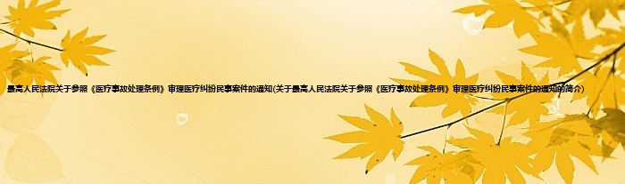 本文关于最高人民法院关于参照《医疗事故处理条例》审理医疗纠纷民事案件的通知的简介就讲解完毕,希望对大家有所帮助。