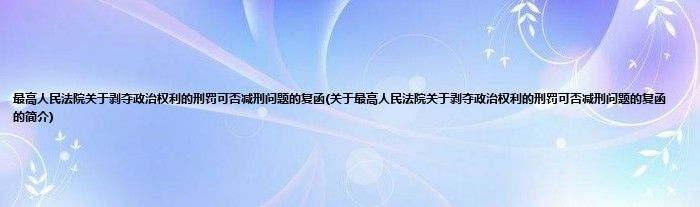 大家好,最高人民法院关于剥夺政治权利的刑罚可否减刑问题的复函,关于最高人民法院关于剥夺政治权利的刑罚可否减刑问题的复函的简介很多人还不知道,现在让我们一起来看看吧!