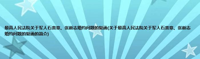 本文关于最高人民法院关于军人石贵章、张新志婚约问题的复函的简介就讲解完毕,希望对大家有所帮助。