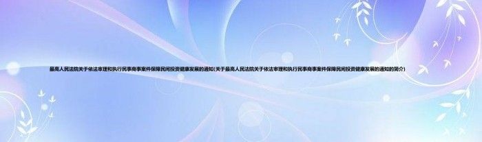 大家好,最高人民法院关于依法审理和执行民事商事案件保障民间投资健康发展的通知,关于最高人民法院关于依法审理和执行民事商事案件保障民间投资健康发展的通知的简介很多人还不知道,现在让我们一起来看看吧!