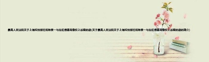 本文关于最高人民法院关于上海科技报社和陈贯一与朱虹侵害肖像权上诉案的函的简介就讲解完毕,希望对大家有所帮助。