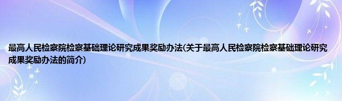 本文关于最高人民检察院检察基础理论研究成果奖励办法的简介就讲解完毕,希望对大家有所帮助。