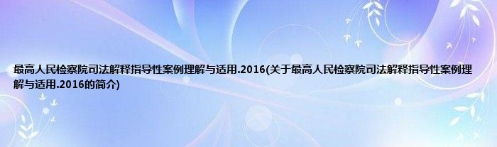 本文关于最高人民检察院司法解释指导性案例理解与适用.2016的简介就讲解完毕,希望对大家有所帮助。