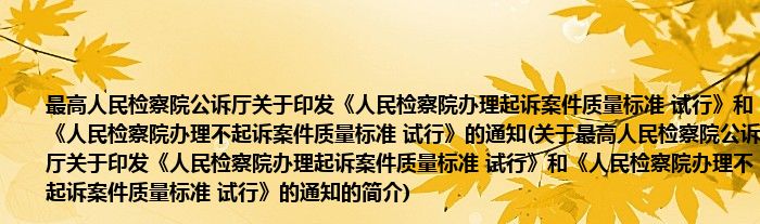 本文关于最高人民检察院公诉厅关于印发《人民检察院办理起诉案件质量标准 试行》和《人民检察院办理不起诉案件质量标准 试行》的通知的简介就讲解完毕,希望对大家有所帮助。