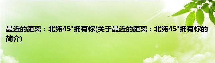 最近的距离:北纬45°拥有你(关于最近的距离:北纬45°拥有你的简介)