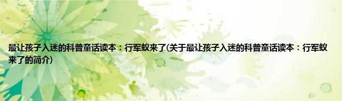 本文关于最让孩子入迷的科普童话读本:行军蚁来了的简介就讲解完毕,希望对大家有所帮助。