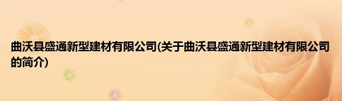本文关于曲沃县盛通新型建材有限公司的简介就讲解完毕,希望对大家有所帮助。