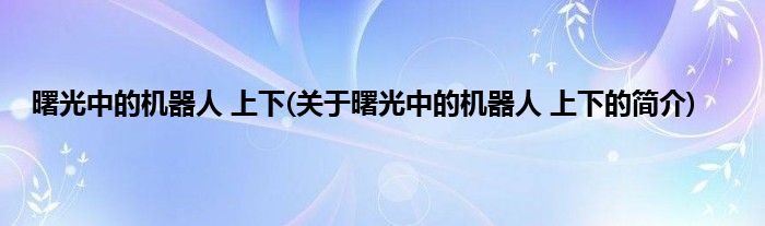 大家好,曙光中的机器人 上下,关于曙光中的机器人 上下的简介很多人还不知道,现在让我们一起来看看吧!